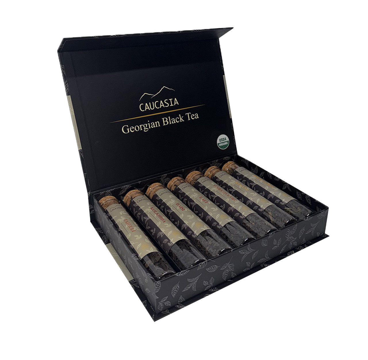 შავი ჩაის სასაჩუქრე / სადეგუსტაციო სეტი, რომელშიც დააგემოვნებთ ჩვენს პროდუქტებს: