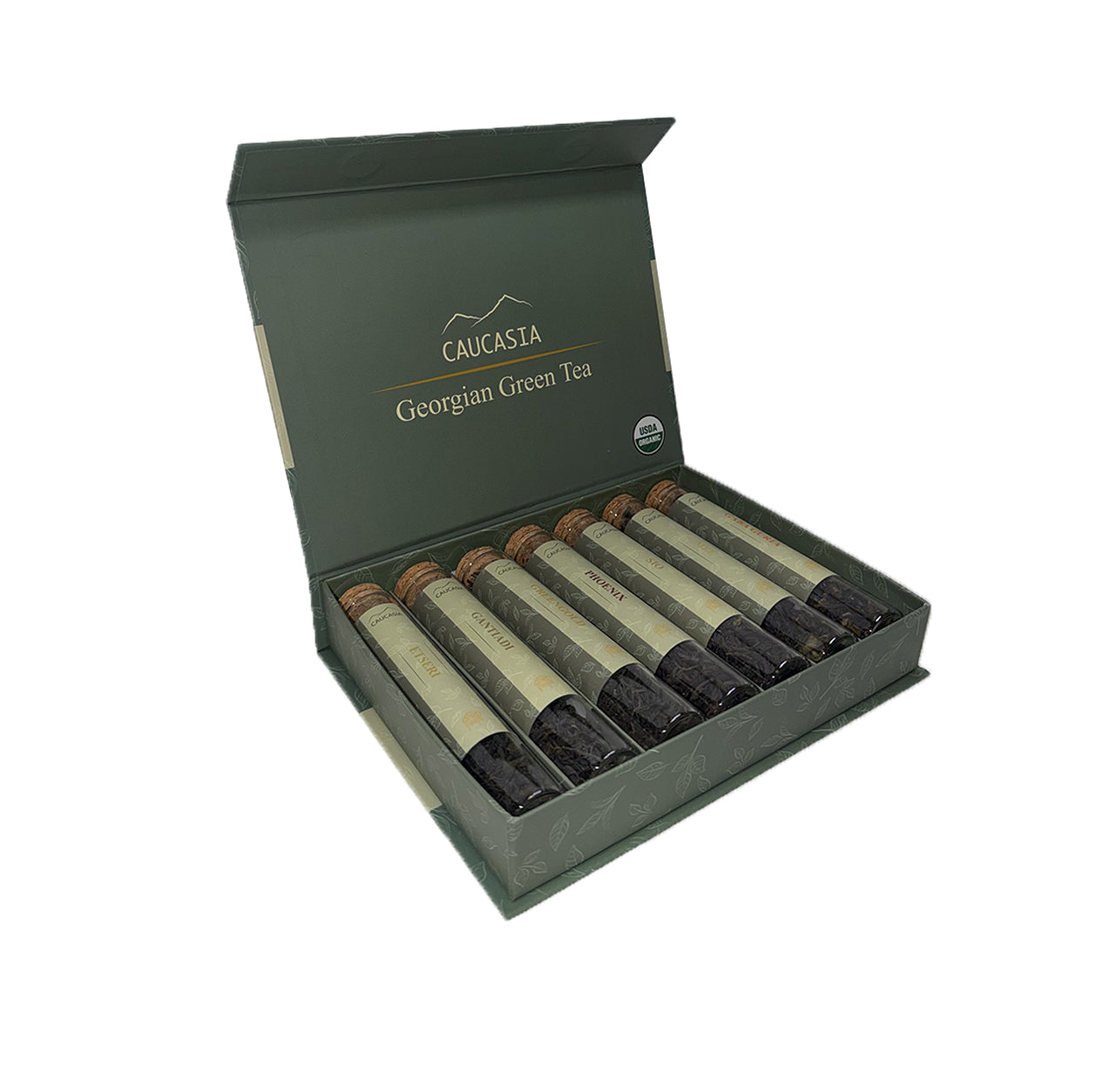 მწვანე ჩაის სასაჩუქრე / სადეგუსტაციო სეტი, რომელშიც დააგემოვნებთ ჩვენს პროდუქტებს:
